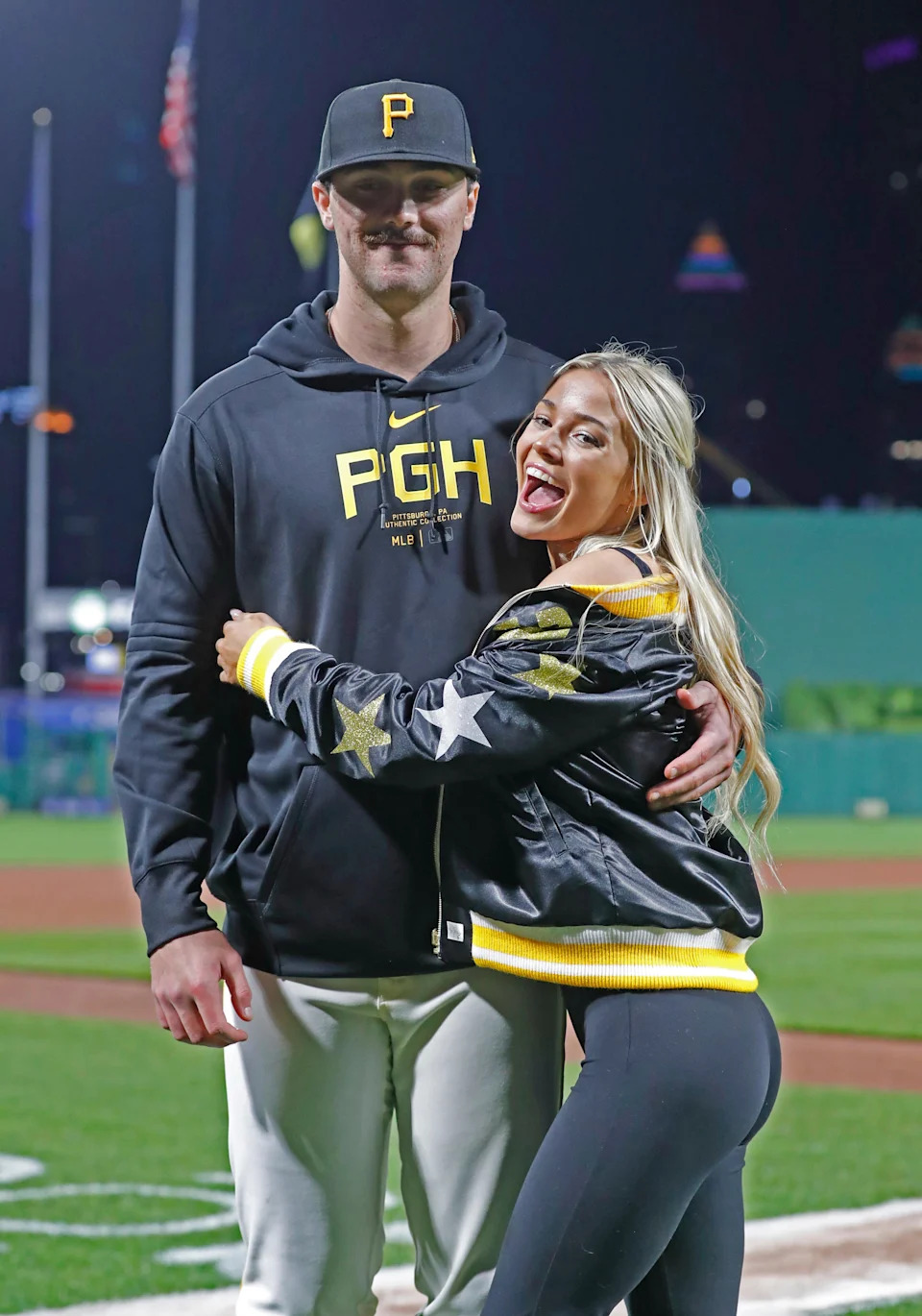 Olivia Dunne on the field in Pittsburgh after her boyfriend Paul Skenes made his MLB debut in May 2024.