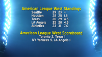 Seattle’s lead in the American League West stands at a game-and-a-half over the Astros heading into tonight. Texas is 4-and-a-half back after a 2-1 loss to Toronto. The Angels are also 4-and-a-half back after a 5-1 loss to the Yankees.