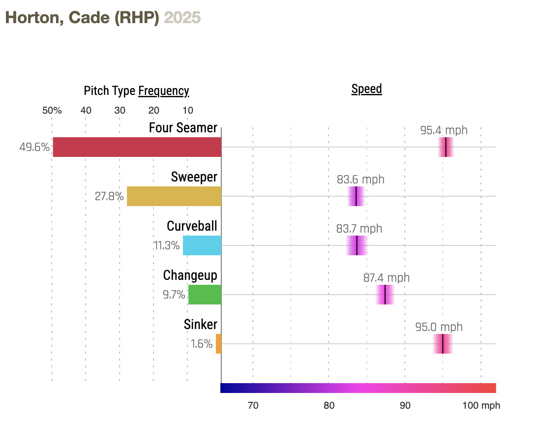 Cade Horton has gotten a bit better with each successive MLB start. In his last outing, last Wednesday against the Marlins, he threw 5⅓ innings and allowed one run. He also threw more pitches (92) than he had thrown in any previous start in his professional career, so perhaps this time he could complete six innings.