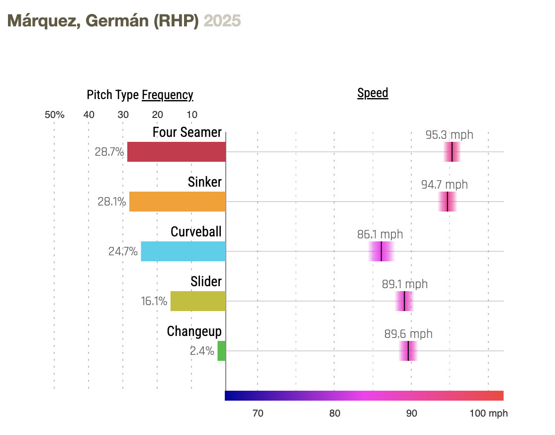 Germán Márquez had several decent years with the Rockies, then had Tommy John surgery which kept him out of most of the 2023 and 2024 seasons.