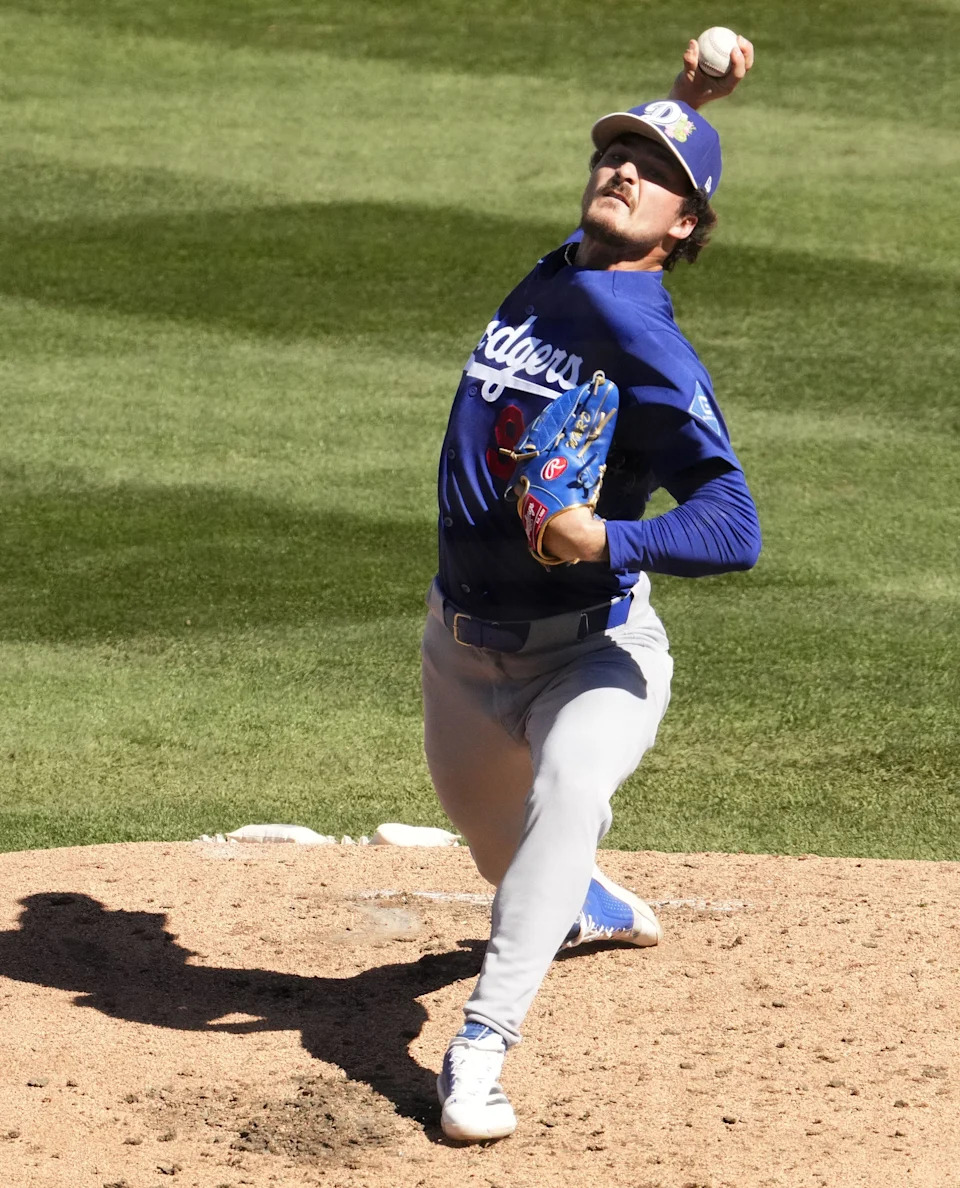Los Angeles Dodgers pitcher Payton Martin throws to the Arizona Diamondbacks in the second inning on Feb. 25, 2026, at Salt River Fields in Scottsdale.