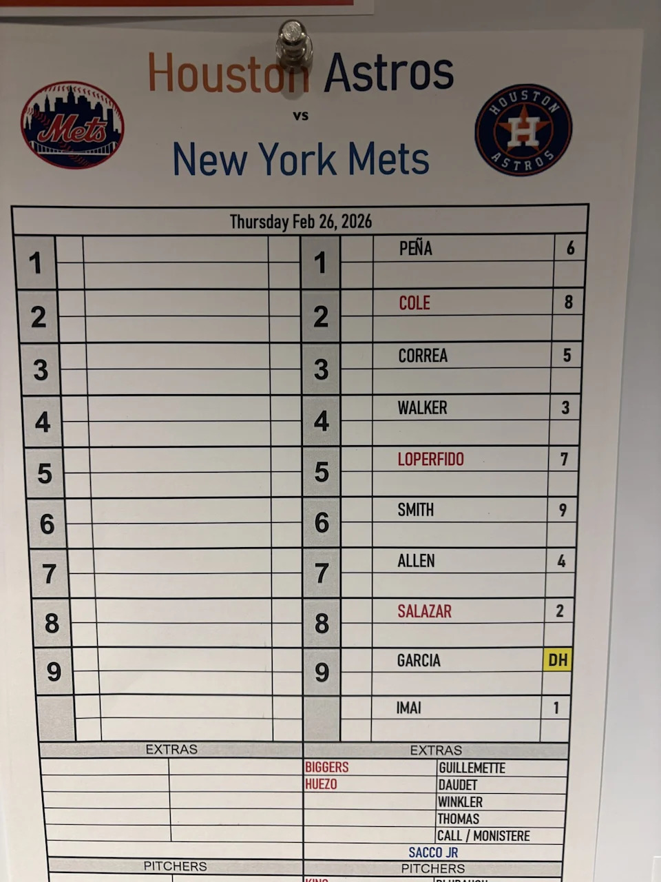 The Houston Astros (1-2-1) host the New York Mets (2-2-1) in a split squad game today in Palm Beach, FL.