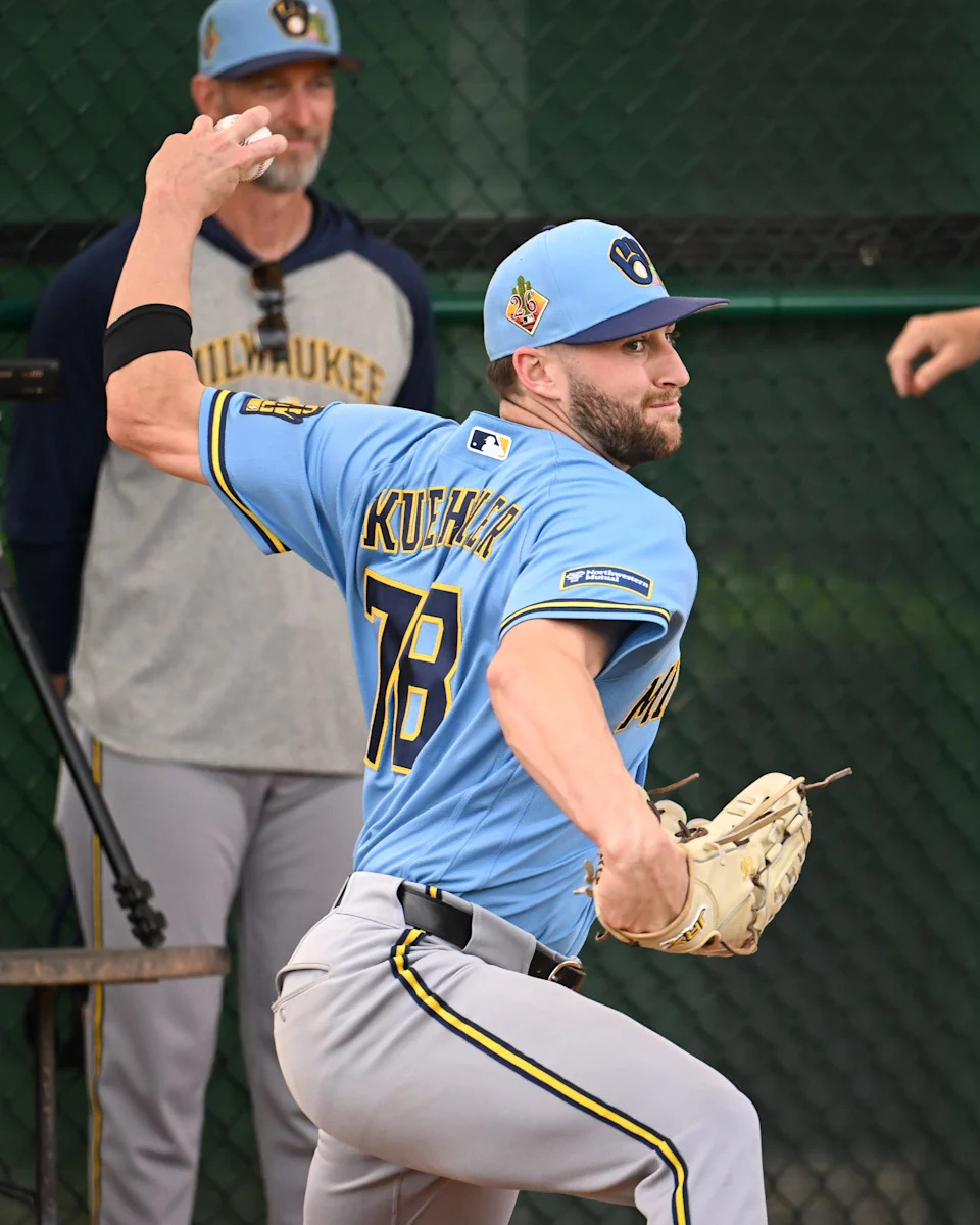 Milwaukee Brewers pitcher Tate Kuehner (78) throws in the bullpen during spring training workouts Sunday, February 15, 2026, at American Family Fields of Phoenix in Phoenix, Arizona.