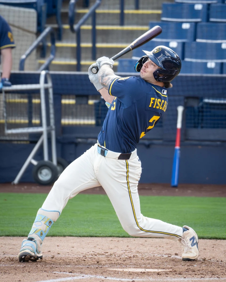 Andrew Fischer’s first Cactus League hit was a memorable one, a 397-foot blast to right field to lead off the bottom of the eighth inning that left his bat at 110.3 mph.