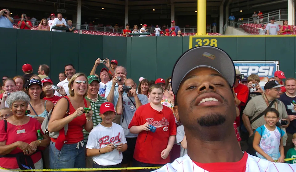 Cincinnati Reds outfielder Ken Griffey Jr. takes his own picture during the Kroger/Fujifilm Photo day where the fans flooded the stadium to take pictures of their favorite players before their game against the Colorado Rockies at Great American Ball Park on July 16, 2005.