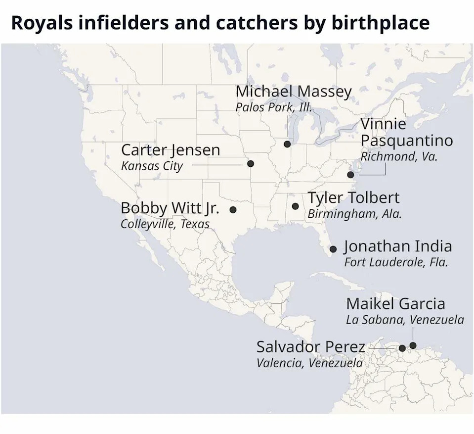 So where are your favorite Royals from? The Star explored the active roster to provide an overall look at each player’s birthplace, from KCMO to Valencia, Venezuela.