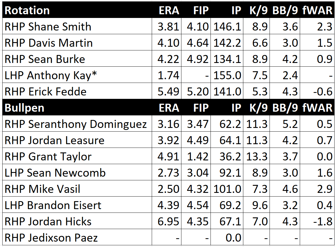 The White Sox had the fewest saves in baseball last year, but they’re hoping Seranthony Dominguez can improve on that. His 30 percent strikeout rate last year was 25th among relievers, and right behind him was Jordan Leasure, a promising young White Sox reliever. Rule 5 pick Mike Vasil had the largest gap between ERA and FIP among all relievers, so there could be some regression there, considering his low strikeout rate. The White Sox signed veteran lefty Sean Newcomb after he had an impressive two months with the Athletics.