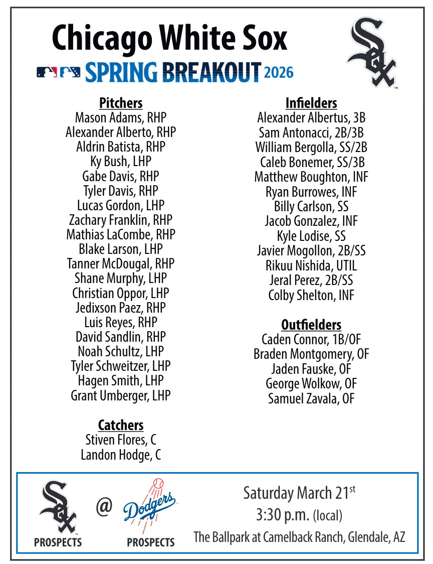 And in other news, the roster for the Spring Breakout Game on March 21. Undoubtedly, this roster consists of the most promising prospects in the White Sox system: