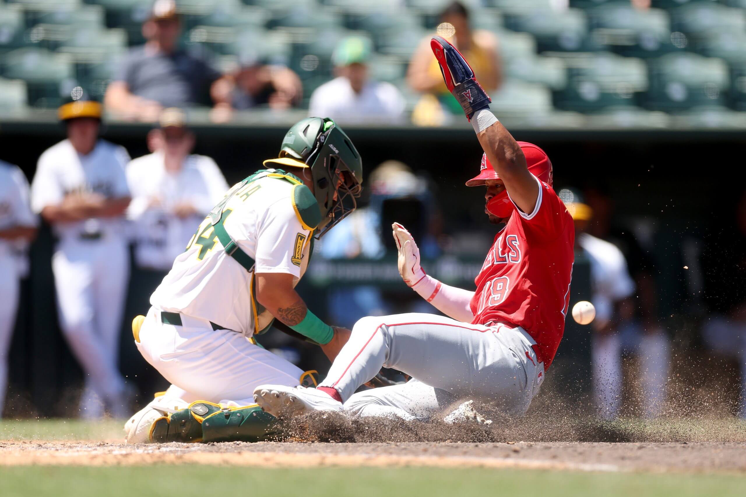 The Angels sent the A’s to their eighth straight loss. (Ezra Shaw / Getty Images)