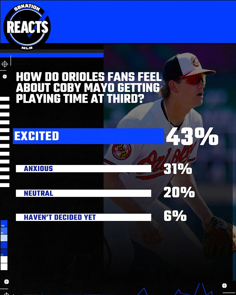 Still to be determined is whether this is a good idea. There have been scouting reports all along that were dubious about Mayo being able to remain at the position. In a survey this week, I polled Orioles fans about their feelings about the move: