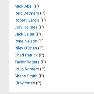 Yeah, maybe. Like Tarantino might say, nice feat. I don’t know if it’s just a random quirk in the projections I managed to find, but I can’t imagine my WHIP is that good or my ERA is that bad. As the Boomer ladies say when you ask them their favorite movie, something’s gotta give. I will say my pitching staff, or as I like to call them, the 2016 All-Stars, should be solid if they don’t start “feeling their age.” For what it’s Wuertz, pitching in this league is a 12-team mixed league by name only. It’s actually an 11-team league, because someone in the league only spent $8 on all of their pitching. Here that is (there’s some free bench pitchers in this):