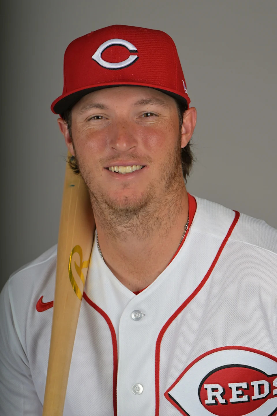 Cincinnati Reds pitcher Rhett Lowder (25) poses for a portrait during the Cincinnati Reds picture day, Tuesday, Feb. 17, 2026, at the Cincinnati Reds player development complex in Goodyear, Ariz.