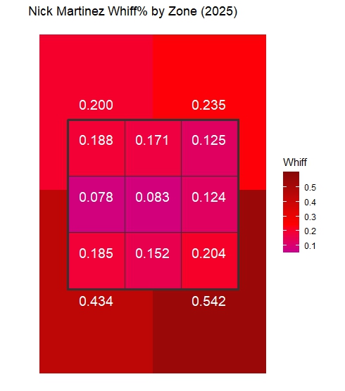The former Red does not get a lot of swing-and-miss in the zone. Rather, he’s a “junk” pitcher who doesn’t throw hard but will try to throw the kitchen sink at hitters. Martinez’s changeup is one of the best in the game.
