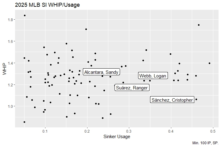 Sandy Alcantara is another pitcher with a higher sinker usage, and yes, someone who had a high WHIP last season. Now, Alcantara did have a better second half in 2025. However, other factors work against him that I touched on in January, including the meat-grinder that will be the NL East.