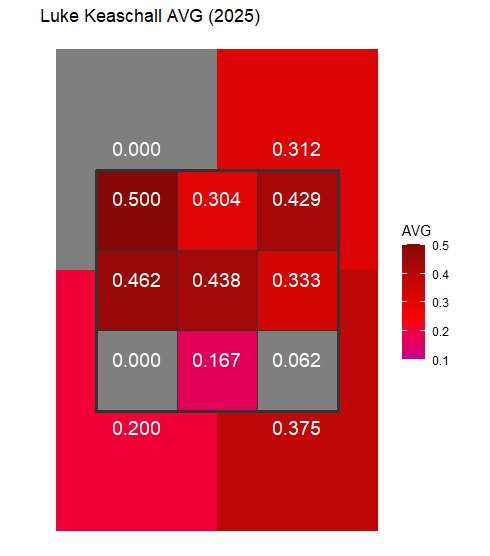 Just from watching Keaschall in his brief stretch with the Twins, he had no problems with the high ball. It was down by the knees where he had trouble in 2025.