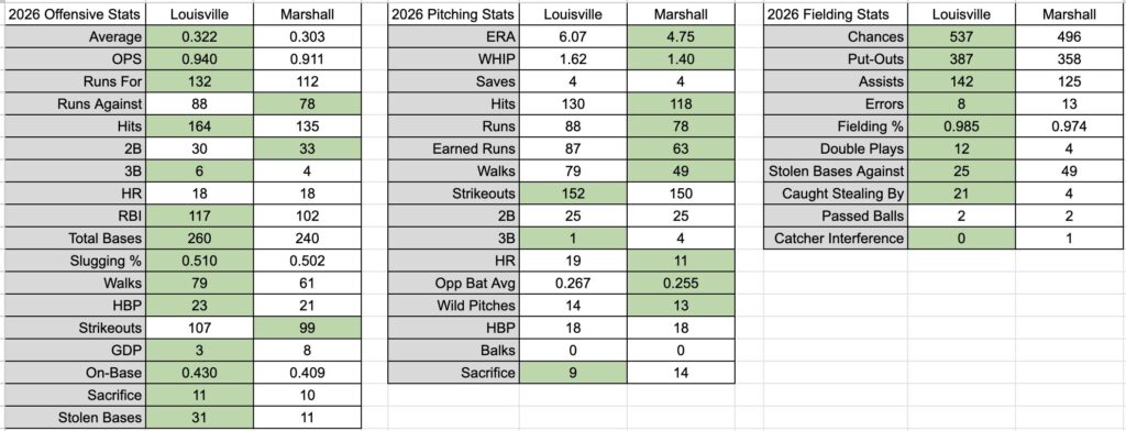 Marshall ended their 2025 campaign in the semifinals of the Sun Belt Conference Tournament, to a team familiar to the Cards last season – Coastal Carolina. In the offseason, They lost key reliever Nick Weyrich to the White Sox organization in the 19th round of the 2025 MLB Draft, and then were picked to finish fourth in the Sun Belt in 2026.