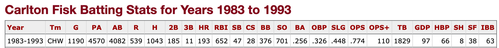 Surely you know where this is going … not only did Fisk have the superior 1980s career, but he actually played longer than Skinner (who retired in 1991), who felt it was “obvious” Fisk was at the “tail end” of his career.
