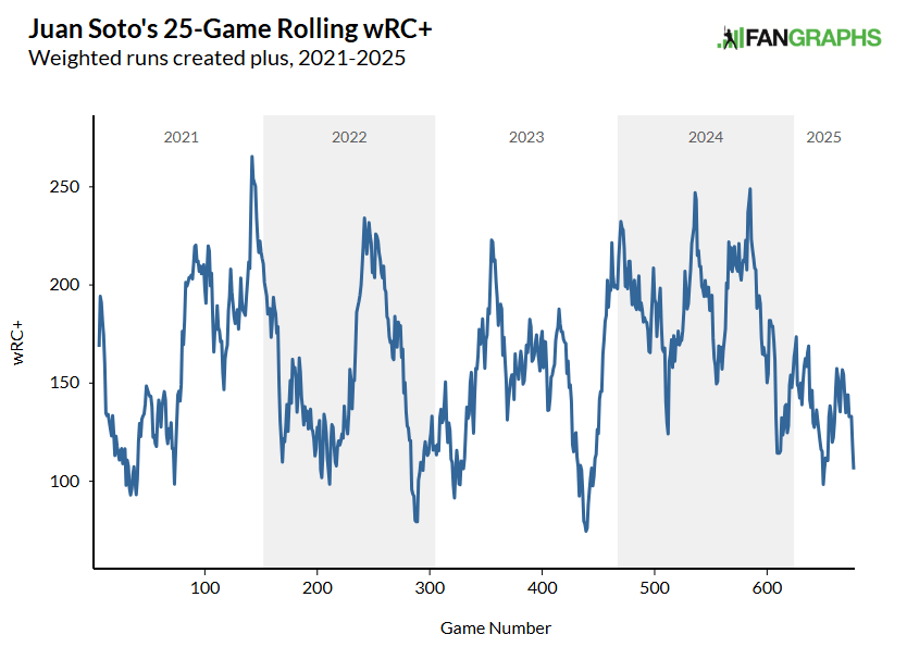 Matt Chapman is in a funk, though two doubles today helps. Usually these droughts are accompanied by explosive spurts over two or three weeks, but we haven’t quite seen those yet in 2025.