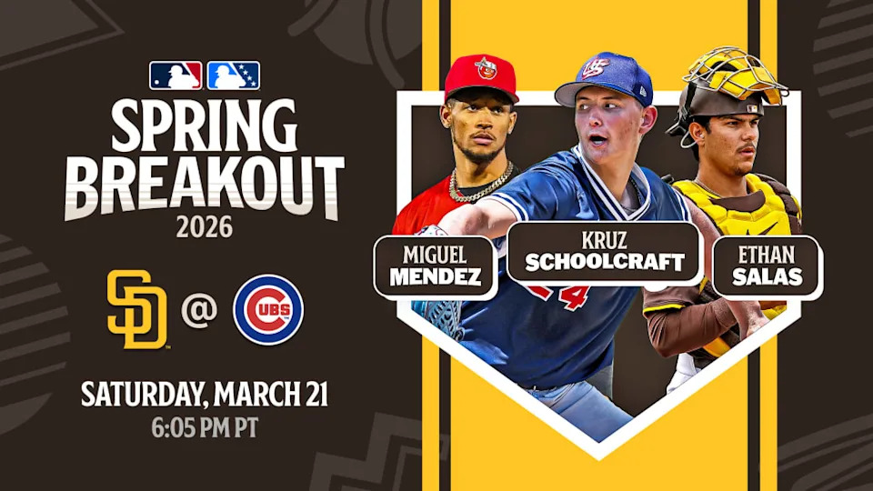 The Padres will play the Chicago Cubs on March 21 at 6:05 p.m. PT at Sloan Park in Mesa, Ariz. Their trimmed roster was announced today and represents many of the top prospects in the system. Top pitching prospect LHP Kruz Schoolcraft will join the 2024 draft LHP Kash Mayfield and RHP Miguel Mendez as three of the top four Padres prospects on the roster. They are joined by catcher Ethan Salas, who rounds out the top five with pitcher Humberto Cruz (No. 5) recovering from elbow surgery this season.