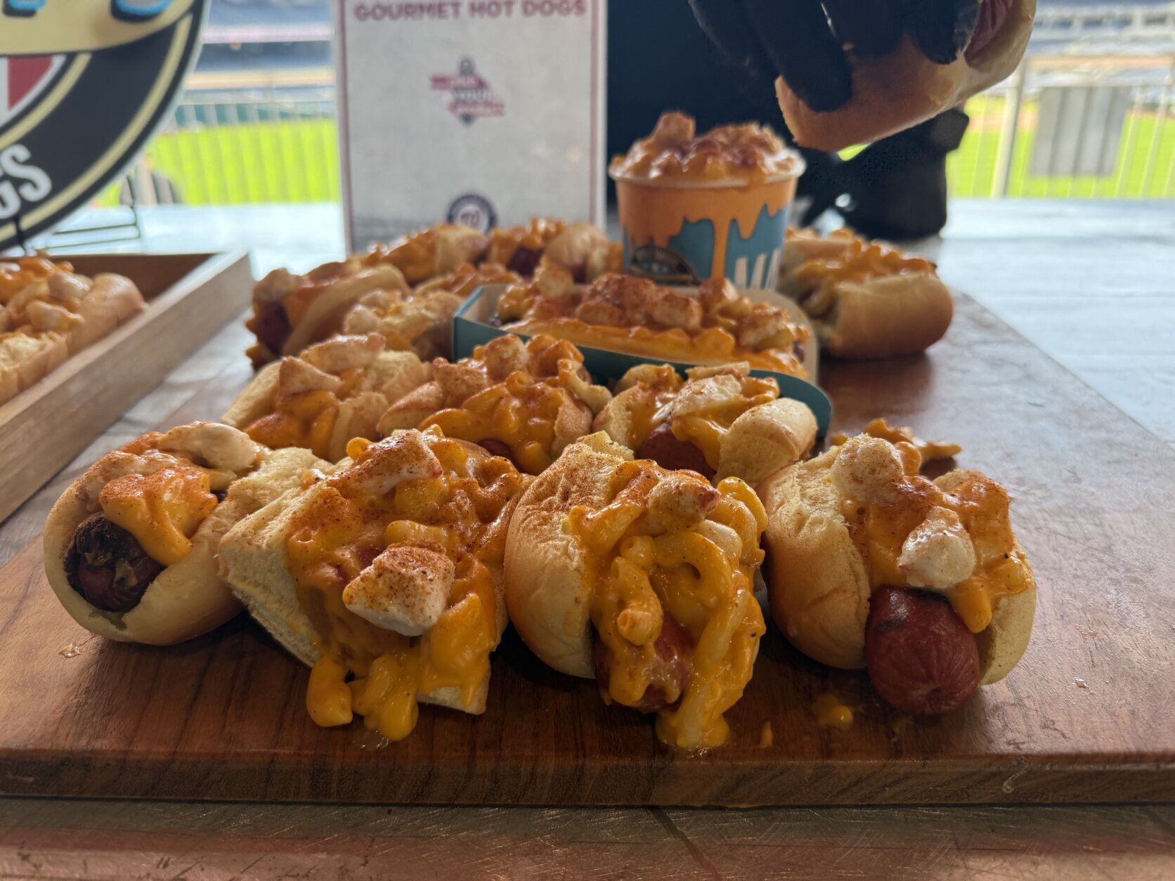 From Baltimore, Stuggy’s brings its crab mac and cheese hot dog.