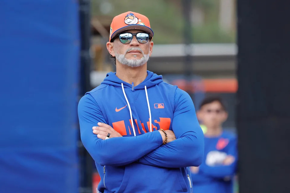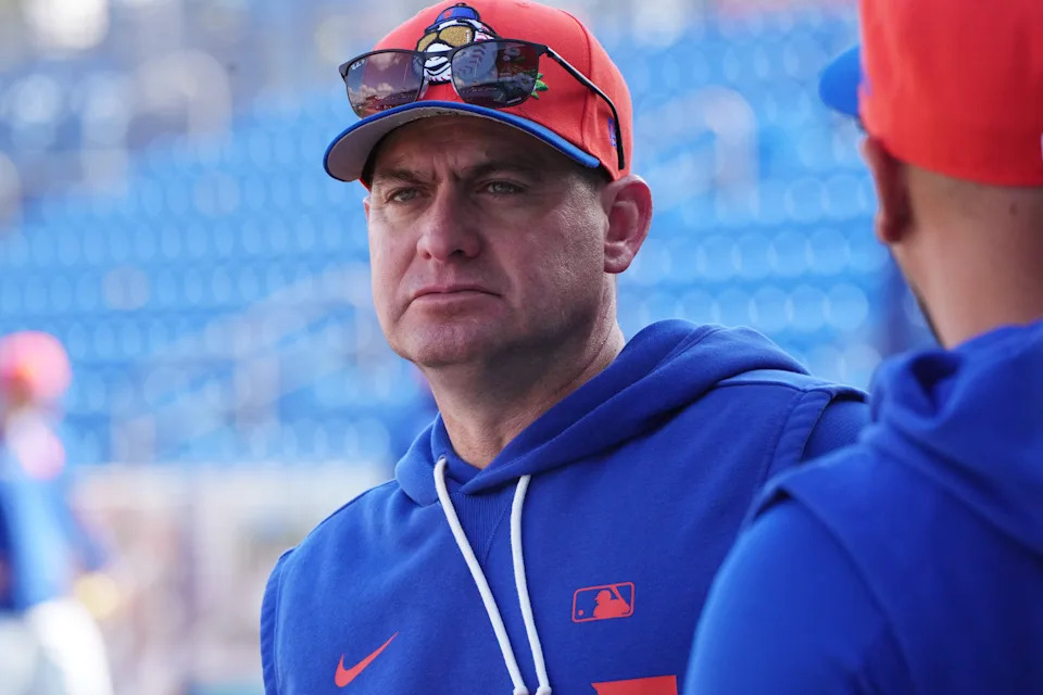 Feb 16, 2026; Port St. Lucie, FL, USA; New York Mets manager Carlos Mendoza (64) during spring training at Clover park. Mandatory Credit: Jim Rassol-Imagn Images