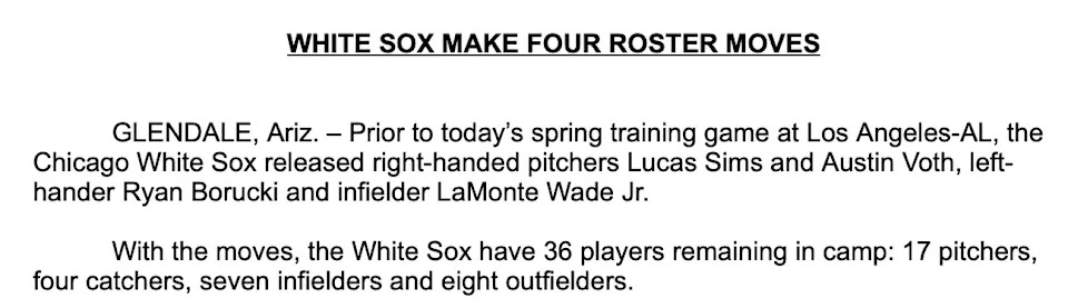 But first, a batch of outright cuts from White Sox camp: