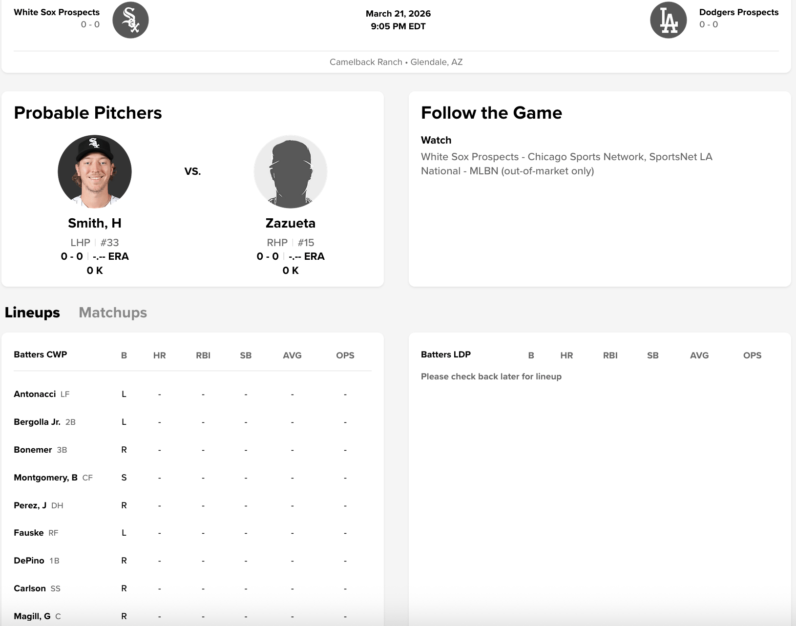 I mean, see if you agree with the White Sox; as of 100 minutes before game time, the Dodgers had not produced a lineup. Pro tip: It will be a really, really, really, really good one. Bonus pro tip: Some of these guys will be White Sox one day, given the habit the front office has had in trading with L.A. over the past decade or so.
