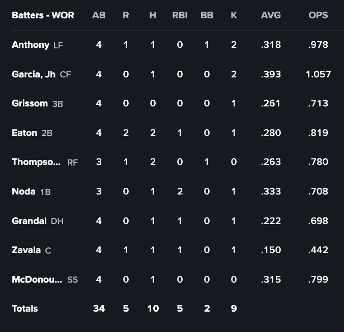 This game wasn’t all Anthony, though: it featured some late-innings heroics! Seby Zavala hit a go-ahead home run in the ninth inning. The 369-foot shot (lol, but hey, a home run is a home run!) had a .384 WPA and kept the Red Sox ahead with a lead that may not have been viable if it weren’t for some filthy outings by Isaiah Campbell, Luis Guerrero and Alex Hoppe. Making a dynamic play in the ninth, holding the lead, and winning a one-run game… wow, has anyone shared this secret with the Red Sox?
