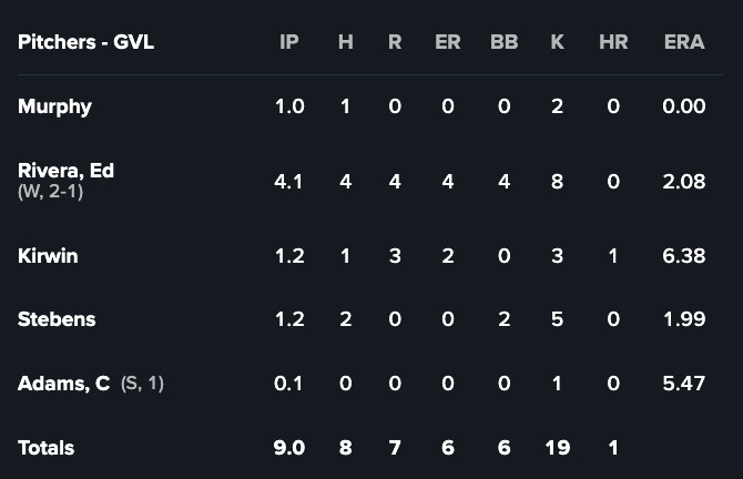 Greenville turned the jets on their offensive game despite some shaky pitching that gave up six walks but struck out nineteen. Yophery Rodriguez, Antonio Anderson and Brooks Brannon each recorded three hits on the day against the Blue Claws (Phillies High-A). What makes Rodriguez’s feat even more impressive is that all three were doubles, and all three scored runners, the first of which cleared the loaded bases, for a total of 5 RBIs on the day. Anderson collected two doubles of his own as the team as a whole also swiped five bags and had six hits with runners in scoring position.