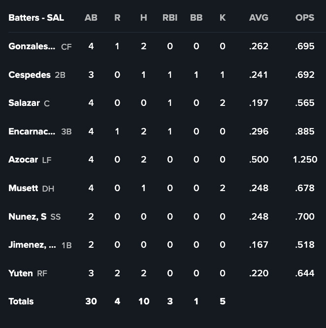 Salem, Game 2: L, 0-1 (BOX SCORE)