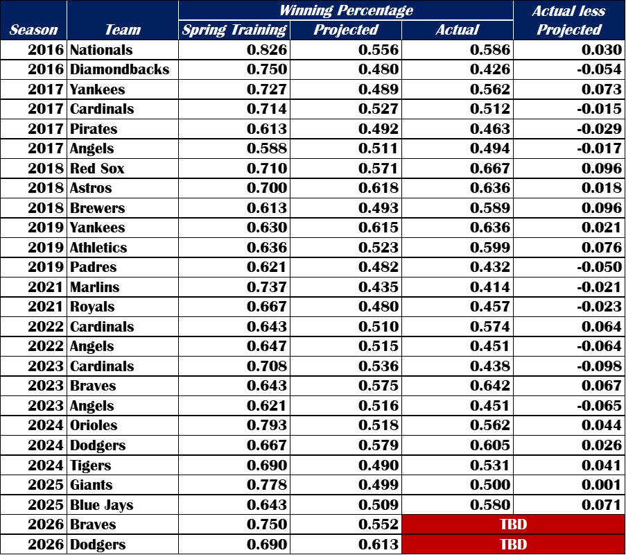 Bottom line, you already knew this: it doesn’t matter. The 2016 Nationals had an insane Spring Training, as did the 2024 Orioles. Those teams actually did do much better than expected. But the 2025 Giants are next, and they ended up at .500, as expected. The 2016 Diamondbacks weren’t supposed to be good, had a great Spring Training, and then imploded during the regular season.