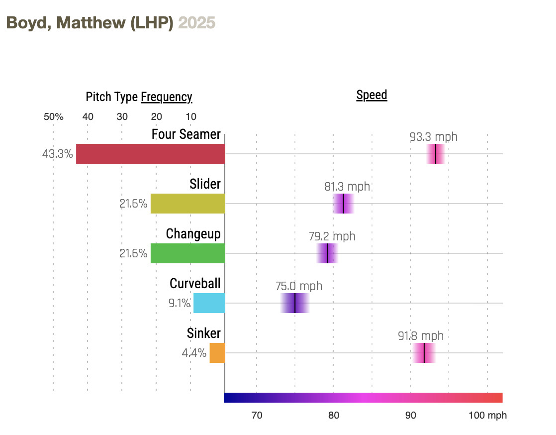 This is his first-ever start against the Giants, and only three current Giants (Willy Adames, Matt Chapman and Wilmer Flores) have ever faced him, and those three are a total 3-for-18 against Boyd with seven strikeouts.