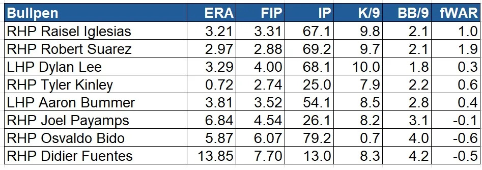 Robert Suarez led the National League with 40 saves in San Diego last year. He will set up Braves closer Raisel Iglesias this year, giving them one of the best 1-2 bullpen combos in baseball. The Braves bullpen had a 4.19 ERA last year, but was awful down the stretch as injuries piled up. This year’s pen gets thin quickly, with former Royals reliever Joel Payamps winning a spot, along with rookie Didier Fuentes.