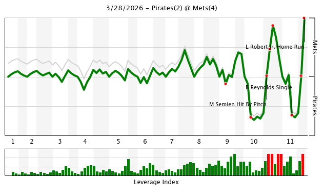 Let’s face it: Thursday’s Opening Day win was too easy. Too stress-free. The Mets aren’t really, truly back until they have a game that makes you question all the life choices that led to you deciding to spend three precious hours of your day watching them. Well, you best believe it: the Mets are officially BACK after today’s game in which the bats were held silent for three hours, followed by some extra innings nonsense. And yet, while this game was looking like it was going to be the first infuriating loss of the season, it instead proved to be the first thrilling come-from-behind victory of the season, with Luis Robert Jr. socking an 11th inning walk-off bomb to give the Mets win number two of 2026.
