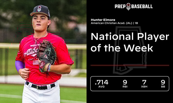 The latest Prep Baseball National Player of the Week produced at an elite level with the bat, hitting over .700 with more than half of his hits going for extra bases. From Alabama, 1B Hunter Elmore (American Christian Academy) is not only the fourth to receive the honors in 2026, but the first from the class of 2028 to be recognized at the national level this season. More>>