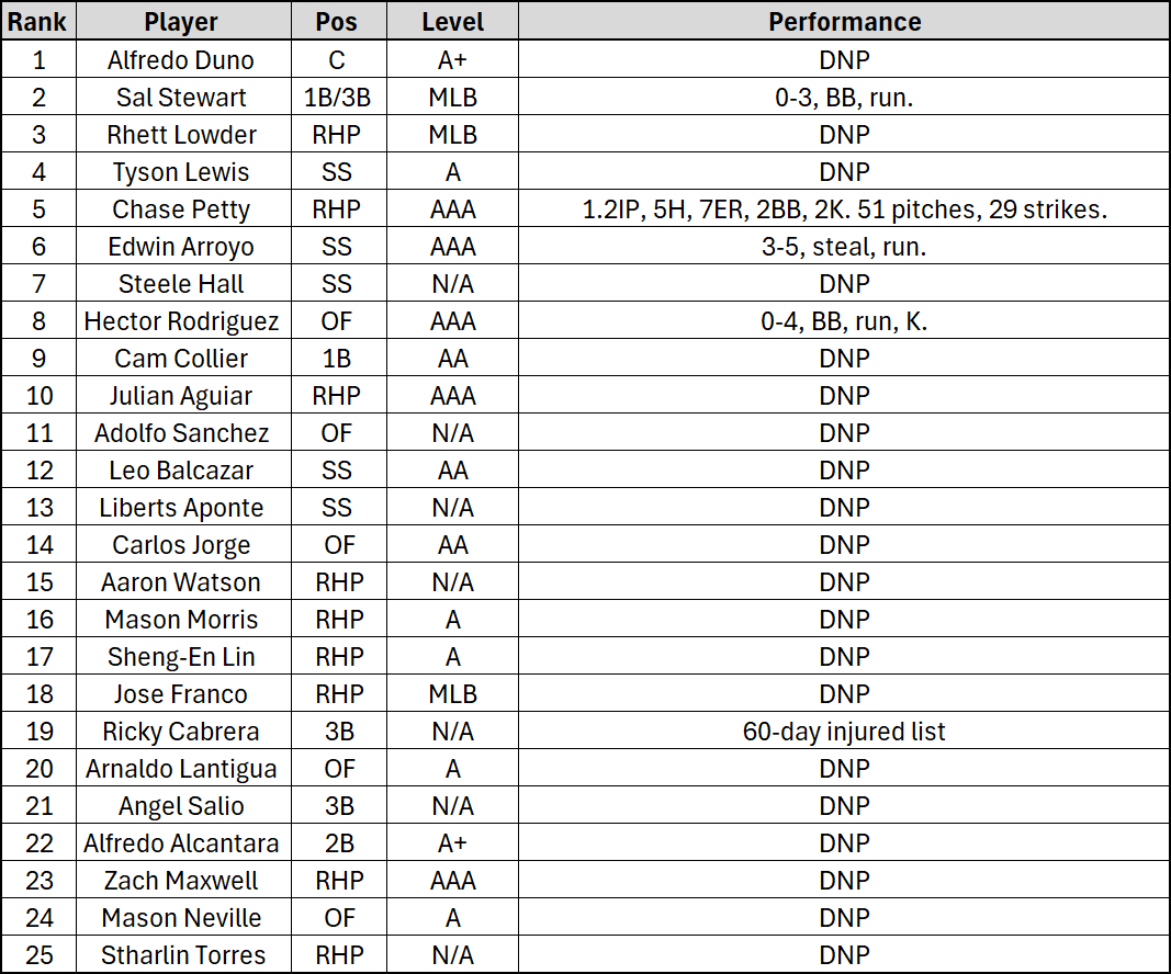 Through Friday the 10th I will be including the Top 25 Prospect Rundown here on the site and game notes, but after that if you would like to get that each and every day, you can get it emailed to you every morning during the season by signing up at Patreon and helping support the site.