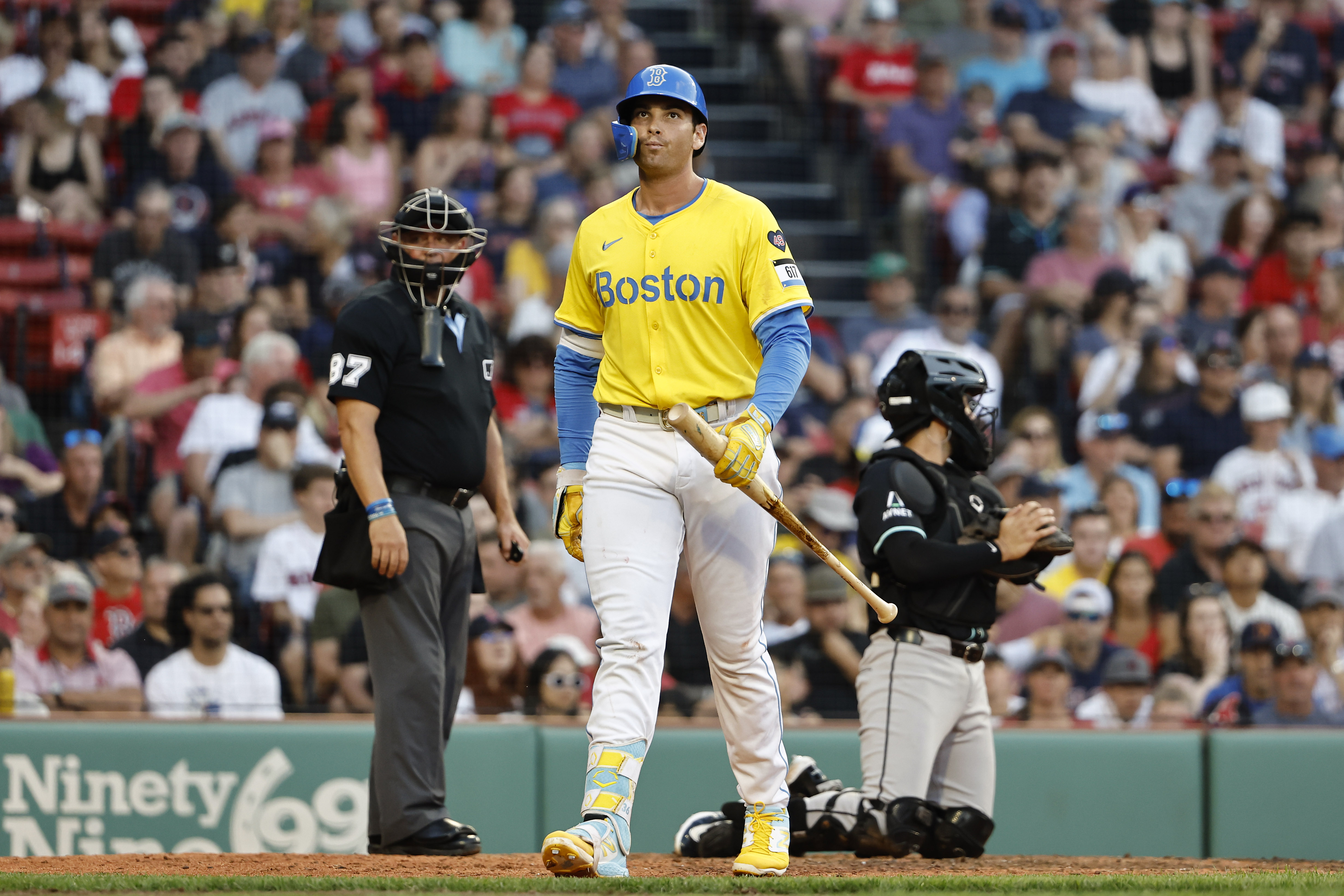 GettyTriston Casas #36 of the Boston Red Sox heads back to the dugout after striking out during the eighth inning against the Arizona Diamondbacks at Fenway Park on August 24, 2024 in Boston, Massachusetts.
