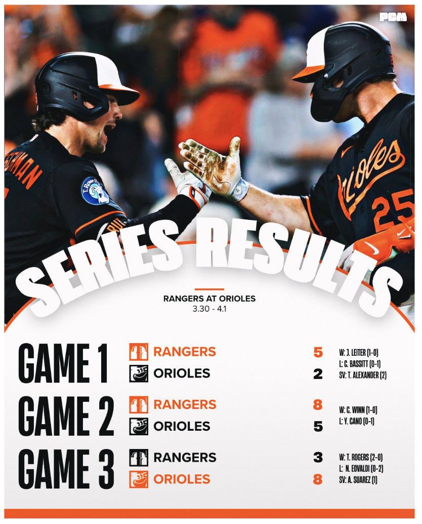 As they did in the final game of their opening series against the Minnesota Twins, the O’s bats came alive to propel the team to an 8-3 victory over the Texas Rangers on Sunday.