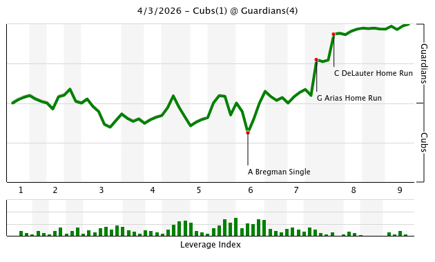 Up Next: Game two in Cleveland. Shōta Imanaga (0-1, 7.20) starts for the Cubs. Slade Cecconi (0-1, 12.46) stars for Cleveland. Cecconi is right handed. At least until Seiya Suzuki returns to the Cubs, the Cubs are much better against right handed pitching. Cleveland is yet to face a lefty this season. They were 22-24 against lefty starters a year ago, on their way to an 88-win season overall. Did they adequately address that issue? The Cubs were 73-47 against righty starters on the way to 92 wins. So generally, the Cubs are better against righties.