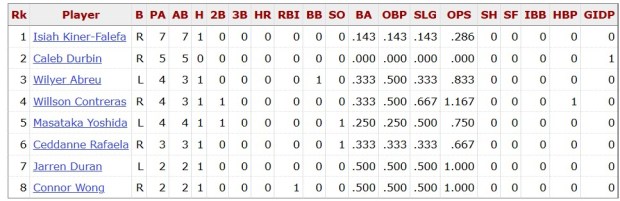 Here is how he’s fared against current Red Sox hitters: