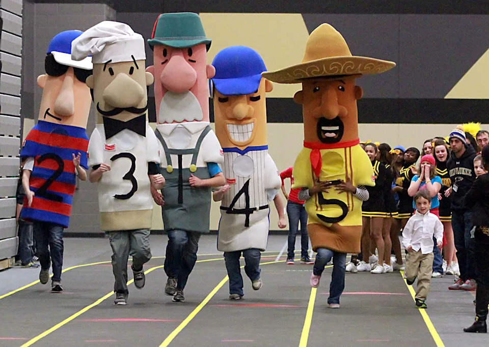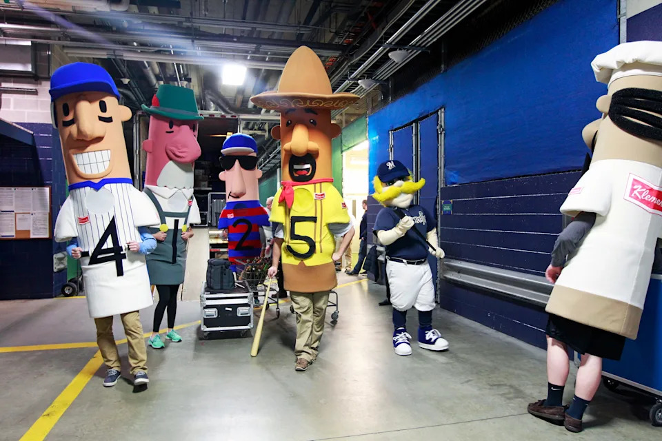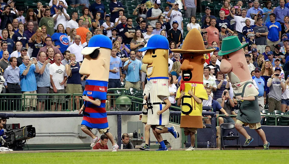 The Brewers Racing Sausages perform during a Brewers and Los Angeles Dodgers game on Aug. 17, 2011.