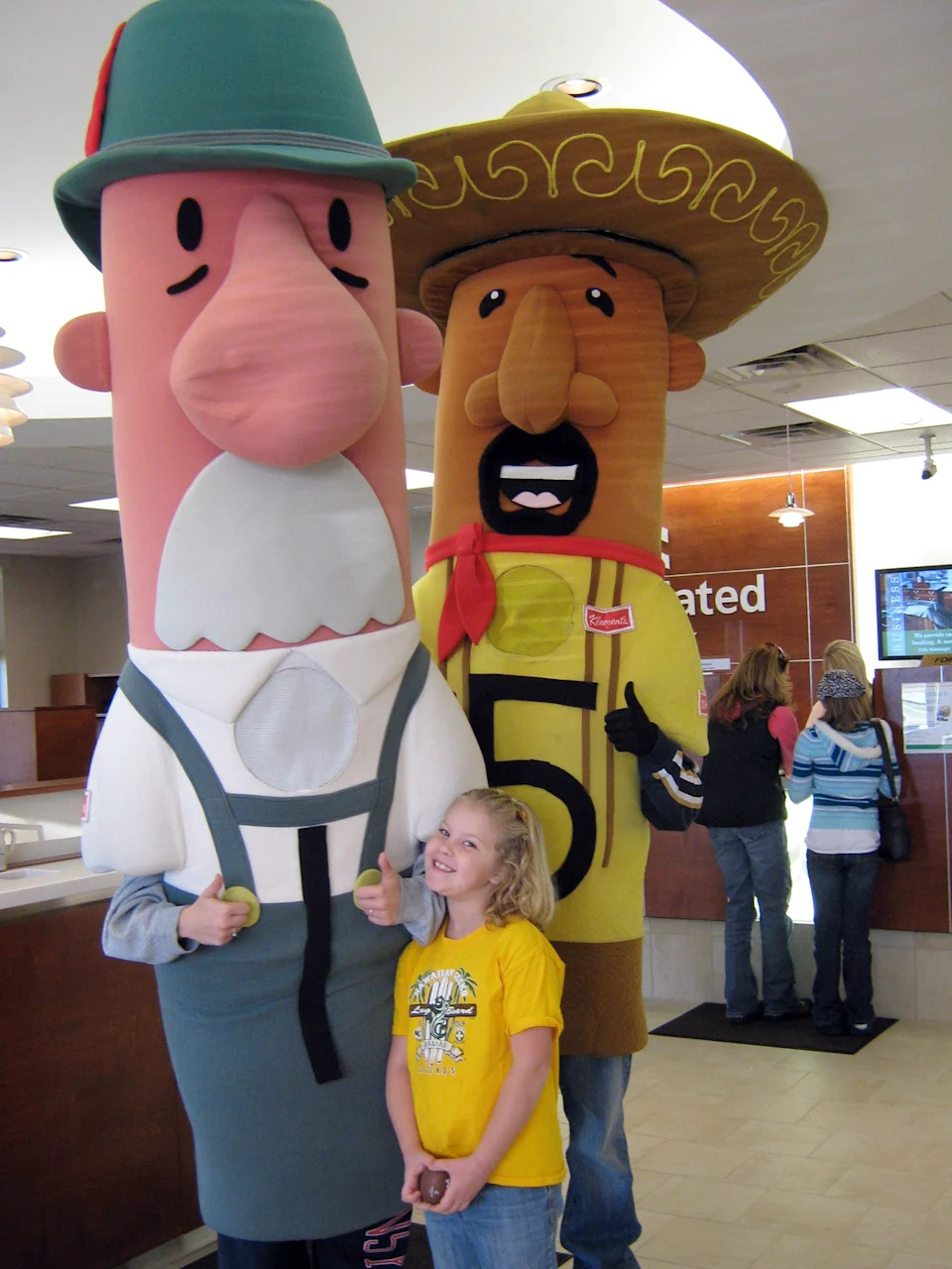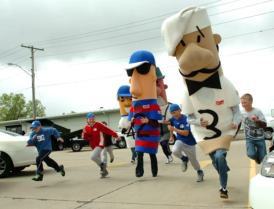 The Milwaukee Brewers Racing Sausages race kids at Ewald Chevrolet in Oconomowoc on May 8, 2010. The sausages were at the dealership during a promotional event.