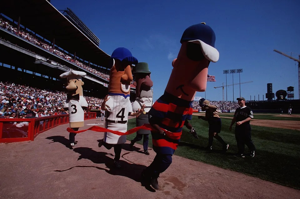 This image taken on April 6, 2001, shows the first sausage race held at Miller Park.