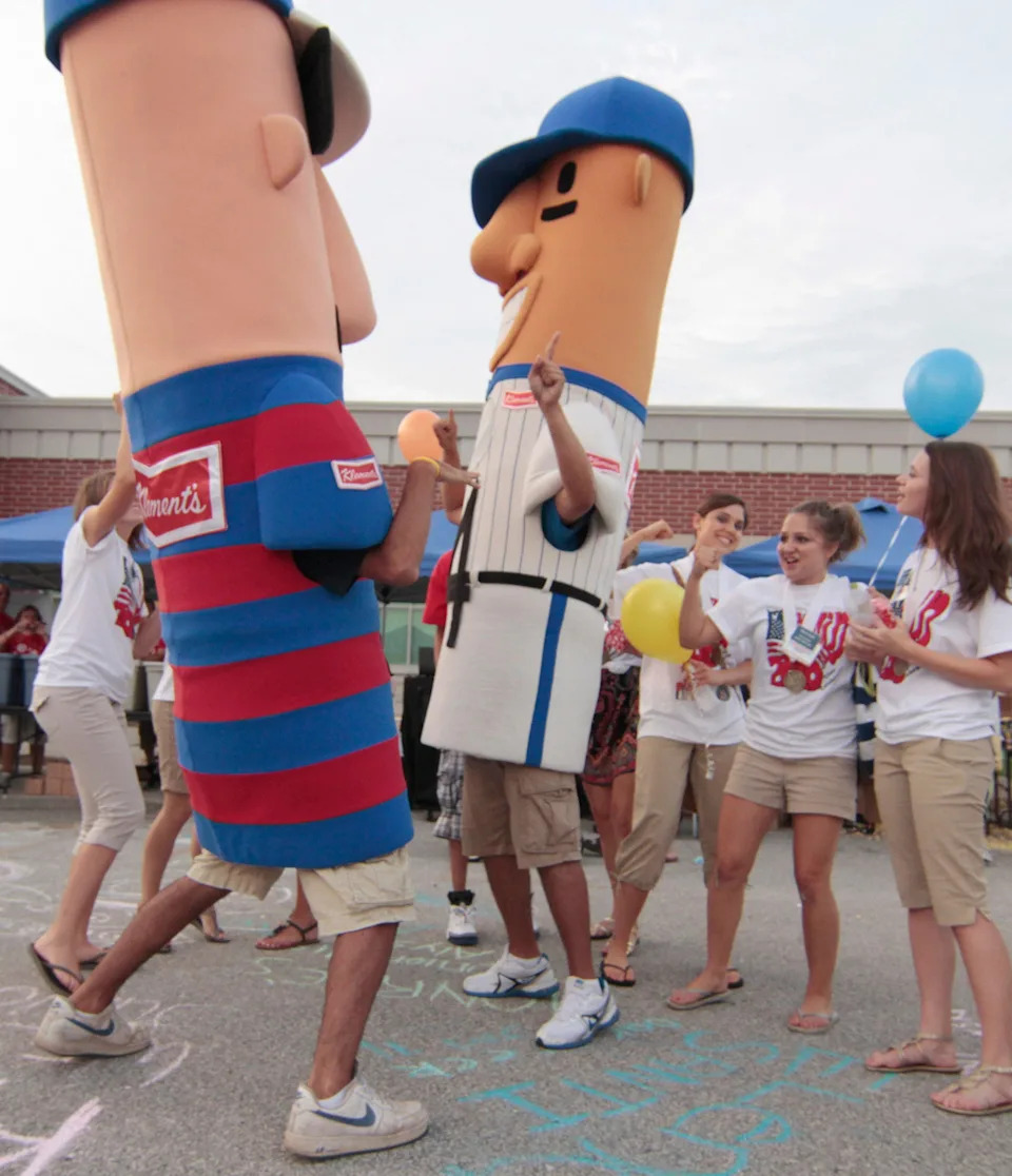 The famous racing sausages dance during the National Night Out kick-off celebration at the Franklin Public Library on August 2, 2010.