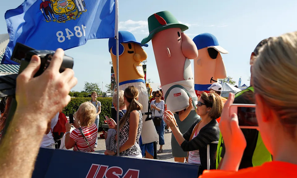 The Milwaukee Brewers Klments Racing Sausages make an appearance at St. Christopher Episcopal Church for St. ChristoPhest on July 23, 2017, in River Hills.