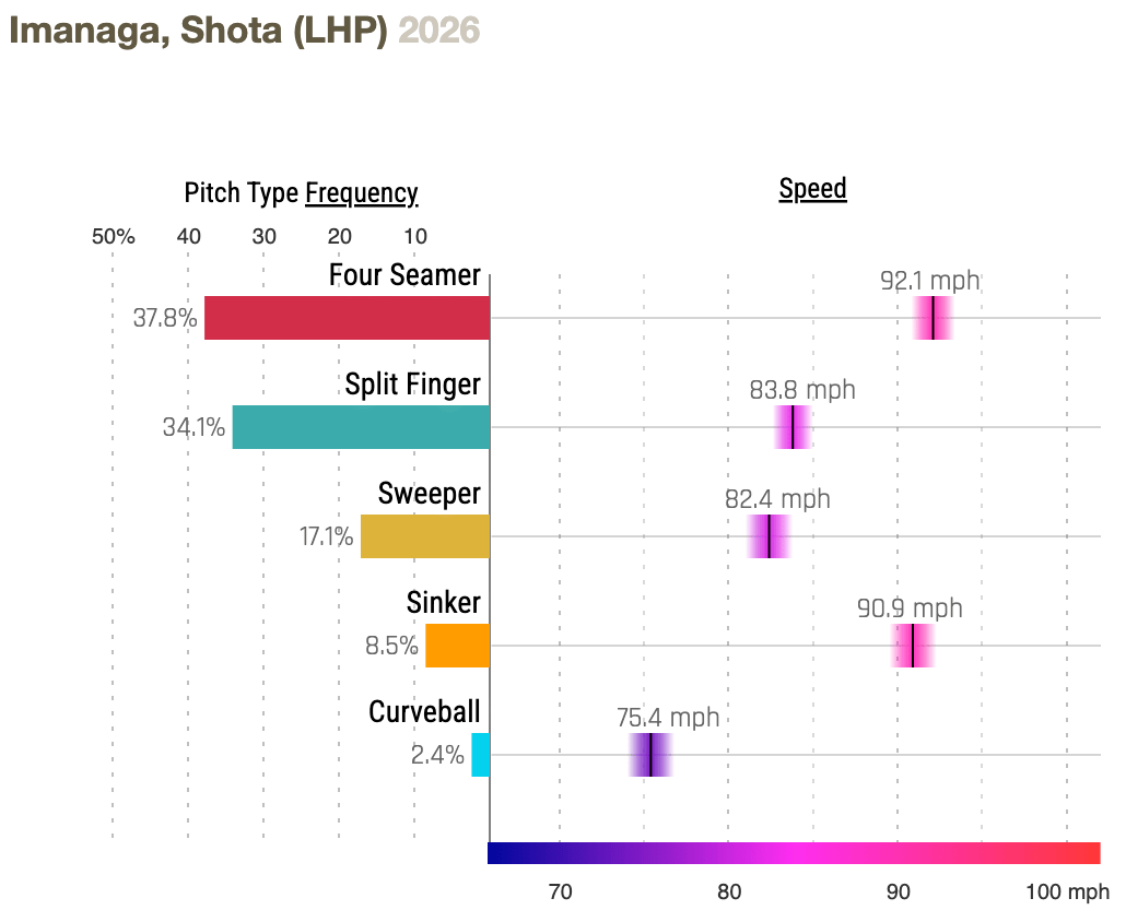 Shōta Imanaga’s first 2026 start wasn’t terrible… but it wasn’t all that good, either. He allowed one home run, unfortunately that came with two men on base. Hopefully he can keep the ball in the ballpark this evening. He did strike out seven Nationals in that first outing.