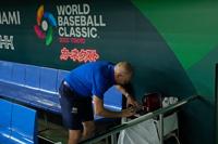 A member of team Italy uses an espresso machine in the dugout ahead of the quarterfinal game against Italy at the World Baseball Classic (WBC) at Tokyo Dome in Tokyo, Japan, Thursday, March 16, 2023. (AP Photo/Eugene Hoshiko) Eugene Hoshiko
