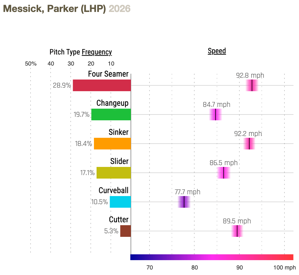 Parker Messick was the Guardians’ second-round pick out of Florida State in 2022. He made his MLB debut last year with seven pretty good starts, and threw six shutout innings against the Dodgers last Monday in Los Angeles, so that’s also pretty good.