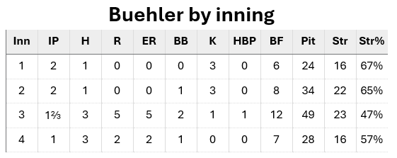 “I think we’re really on a pretty good path, the right track,” Buehler said. “The third inning, some of the new stuff we’re working on, it just wasn’t there.”