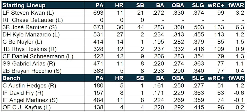 Guardians: 3.20 runs scored/game (28th), 3.70 runs allowed/game (7th)